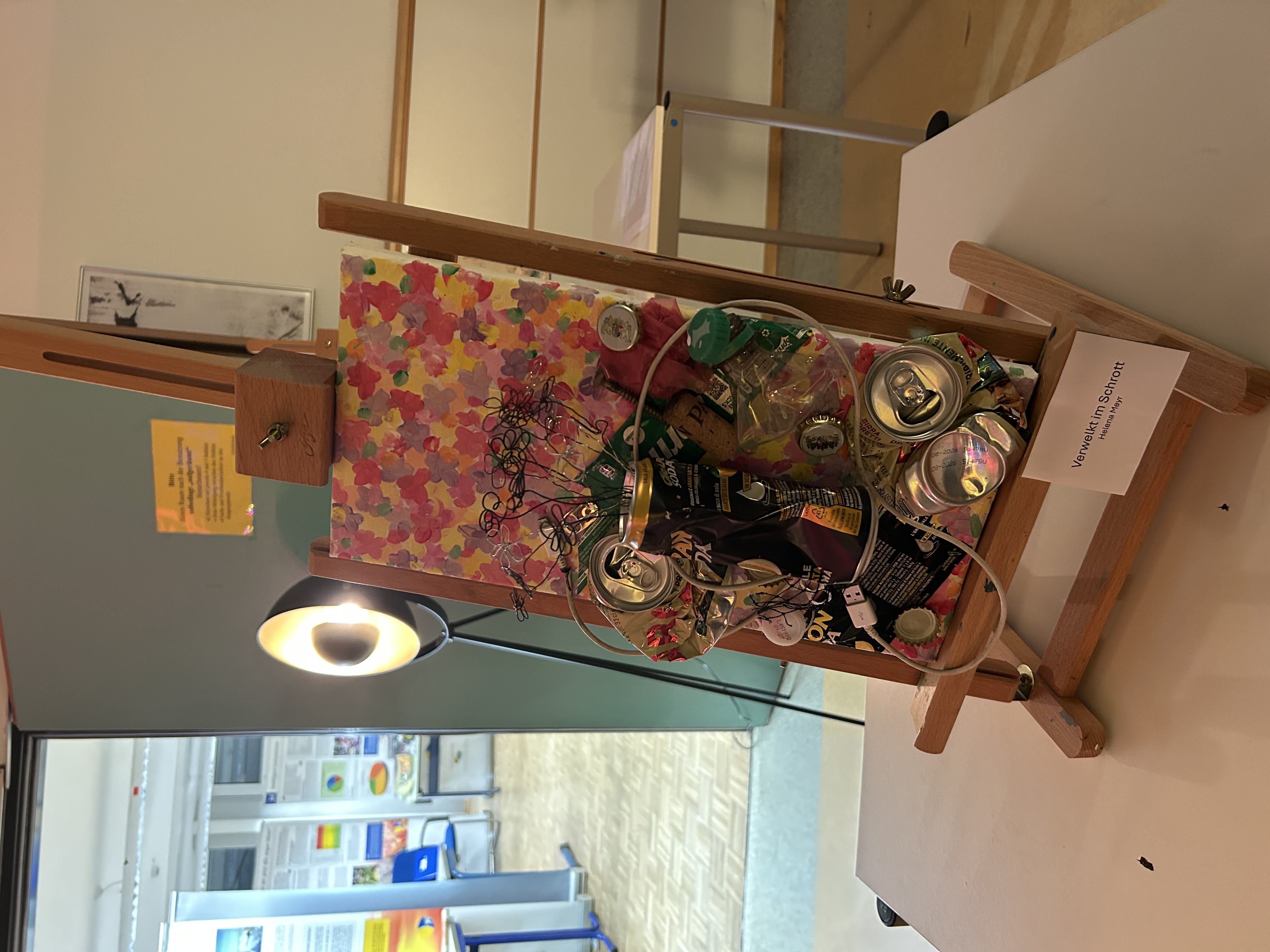Im Mittelpunkt stand eine zweigeteilte Schau: Neben eigenen Kunstwerken der Q13, welche vorwiegend aus wiederverwendeten Materialien im Rahmen des Umwelttags entstanden sind, ergänzte die Wanderausstellung „Klimawandel zum Anfassen - Klimaschutz zum Anpacken“ das Programm. Die Stationen boten wissenschaftliche wie alltagsnahe Zugänge und luden zum Ausprobieren ein.