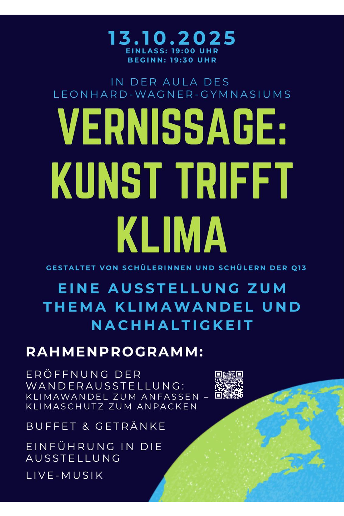 Am Montag, 13. Oktober 2025, verwandelte die Q13 die Aula des Leonhard-Wagner-Gymnasiums in einen offenen Ausstellungsraum: Freies Flanieren, Gespräche an den Werken und Live-Musik prägten den Abend.