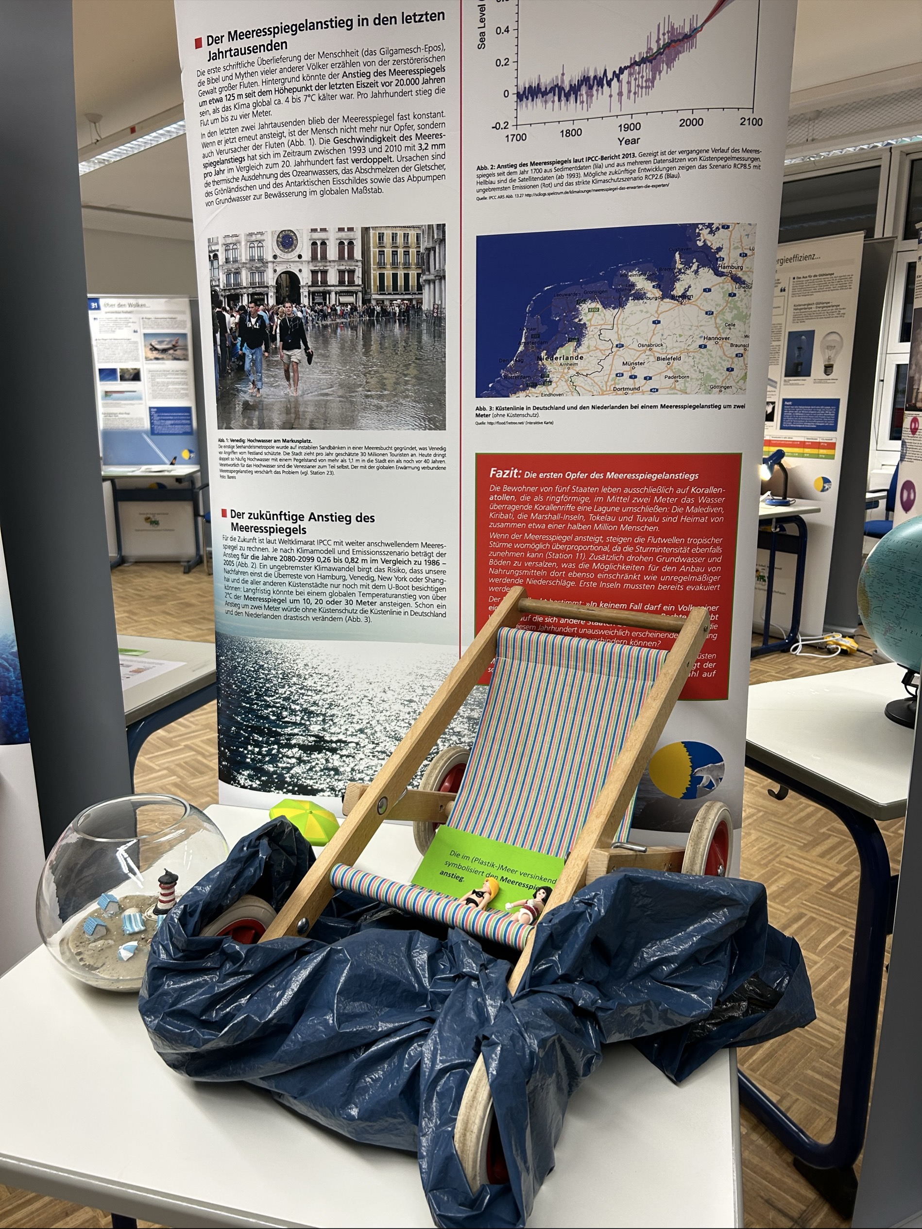 Die Wanderausstellung ist eine Leihgabe des Ferdinand-Porsche-Gymnasiums Zuffenhausen und macht Klimawandel sowie Klimaschutz an 36 interaktiven Stationen erlebbar.